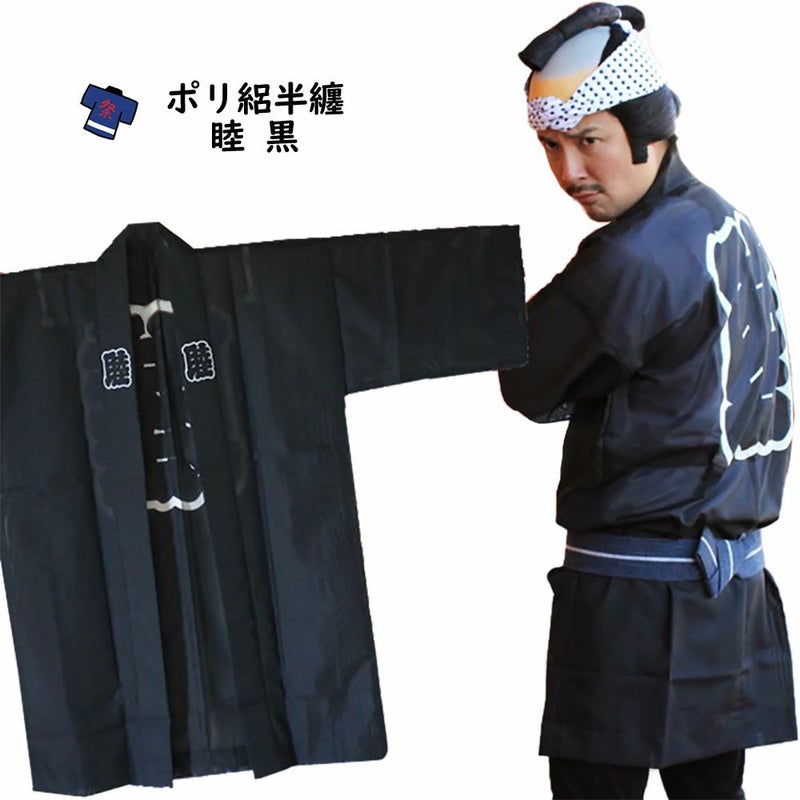 ポリ絽 睦半纏 黒 大人用フリーサイズ