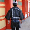 お祭り衣装の定番「半天(はんてん)」です。半天の中では最もよく目にする「睦(むつみ)」の大紋(背中の文字)のデザインです。「睦(むつみ)」とは町内、家族みんな仲睦まじく(なかむつまじく)という意味があります。