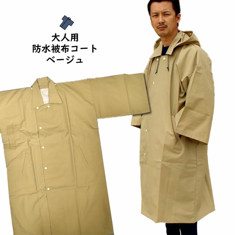 法被用雨合羽(かっぱ) 被布コート 防水布 ベージュ 3L