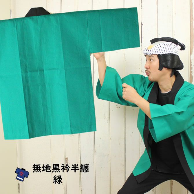 大人用 無地半纏(黒エリ) 緑