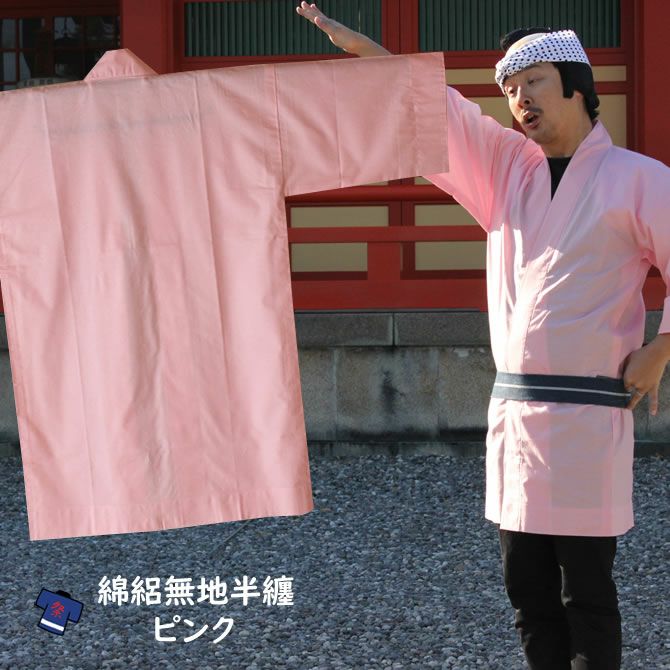 大人用 綿絽 無地半纏 ピンク