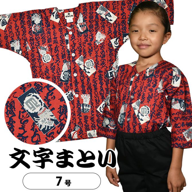 子供用 鯉口シャツ 文字まとい 赤 7号