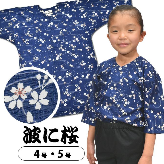 祭すみたや 子供用 鯉口シャツ 波に桜 紺 4号・5号
