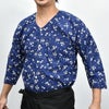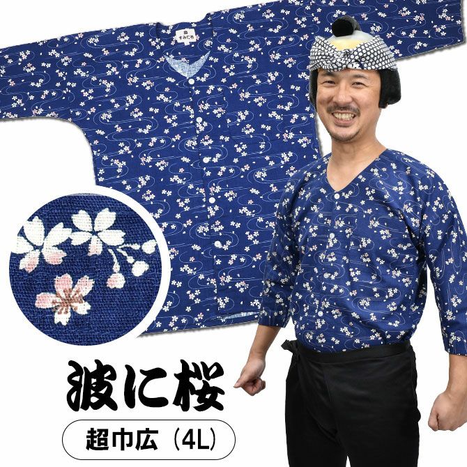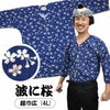 祭すみたや 鯉口シャツ 波に桜 紺 超巾広(4L)