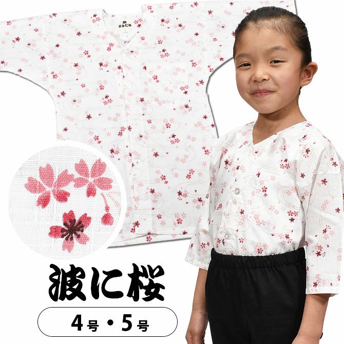 祭すみたや 子供用 鯉口シャツ 波に桜 ピンク 4号・5号