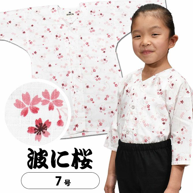 祭すみたや 子供用 鯉口シャツ 波に桜 ピンク 7号