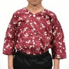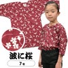 祭すみたや 子供用 鯉口シャツ 波に桜 エンジ 7号