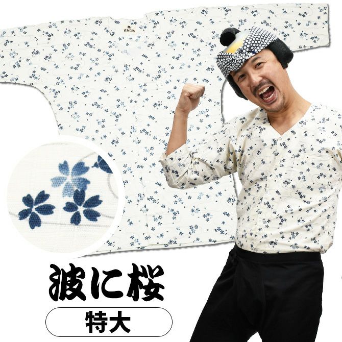 祭すみたや 鯉口シャツ 波に桜 ベージュ 特大