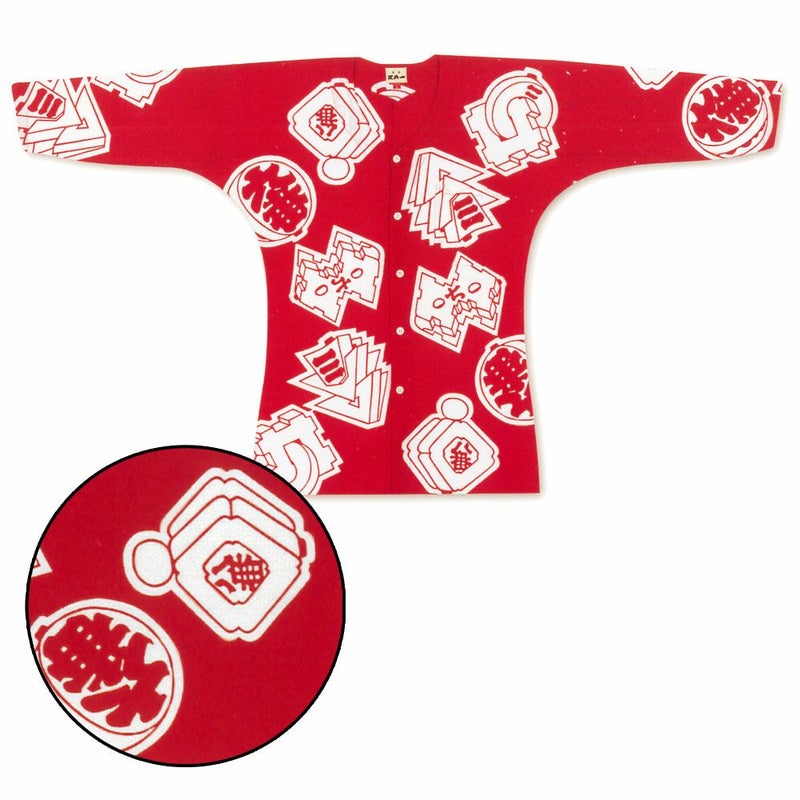 東京江戸一 鯉口シャツ 特撰手拭 まとい赤 【女性用】巾広・巾広丈短