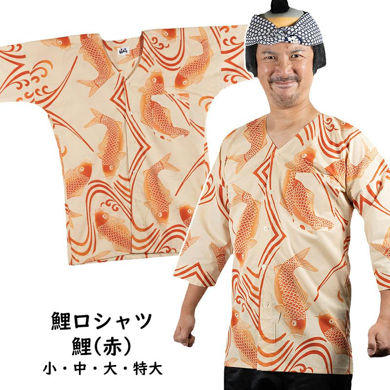 東京いろは 鯉口シャツ 鯉(赤) 小・中・大・特大