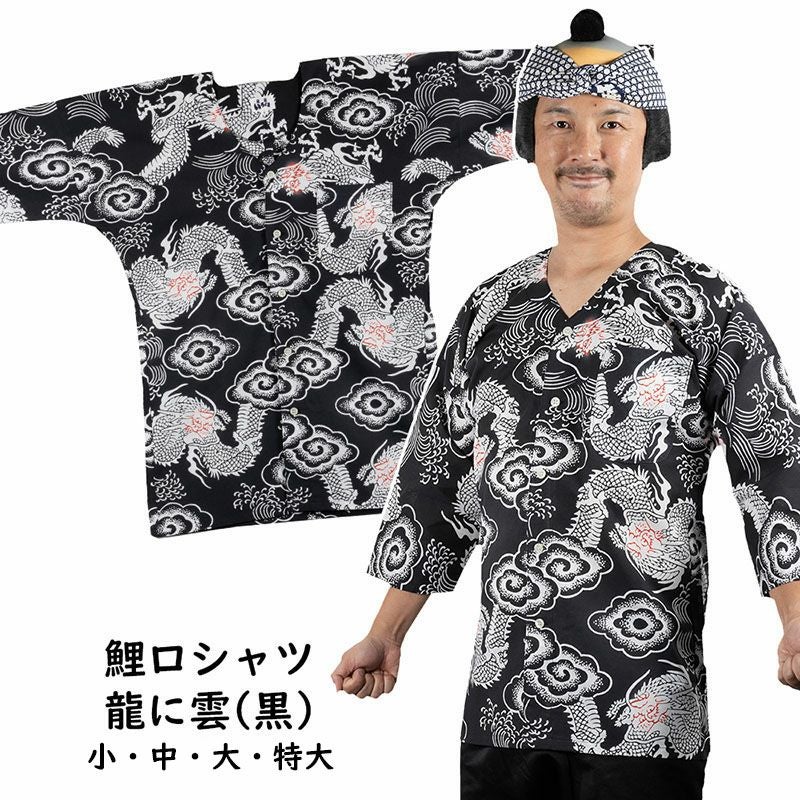 東京いろは 鯉口シャツ 龍に雲(黒) 小・中・大・特大