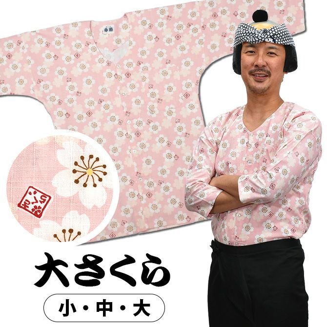 東京小粋 鯉口シャツ 大さくら 桃色 小・中・大