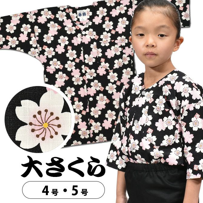 東京小粋 子供用 鯉口シャツ 大さくら 黒 4号・5号