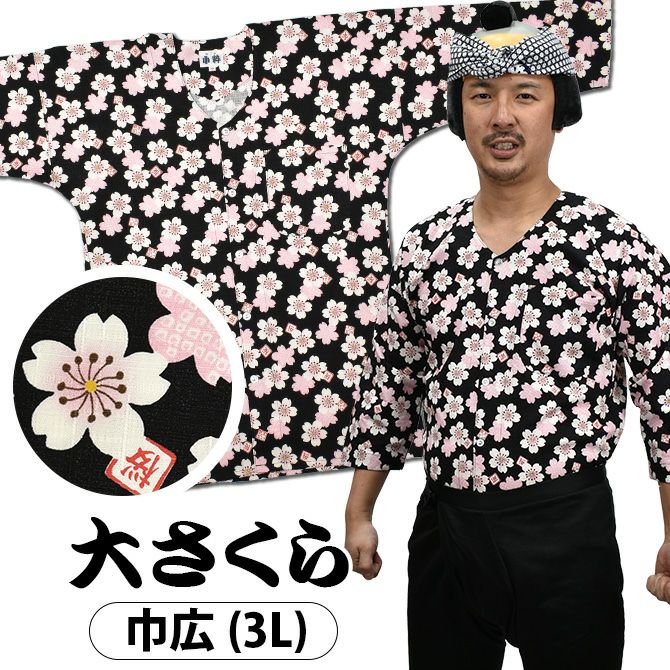 東京小粋 鯉口シャツ 大さくら 黒 3L