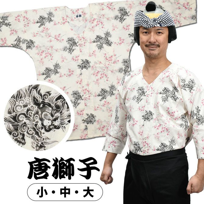 東京小粋 鯉口シャツ 唐獅子 白 小・中・大