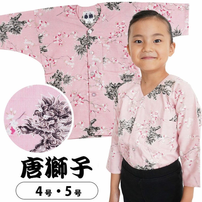 東京小粋 子供用 鯉口シャツ 唐獅子 ピンク 4号・5号