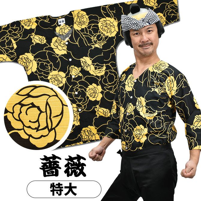 東京小粋 子供用 鯉口シャツ 薔薇 からし色 1号・2号・3号