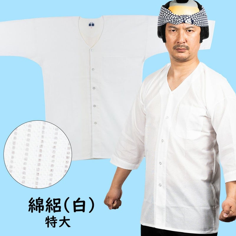 東京小粋 鯉口シャツ 綿絽 白 特大