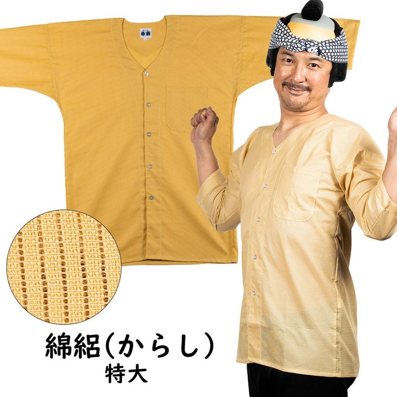 東京小粋 鯉口シャツ 綿絽 からし 特大