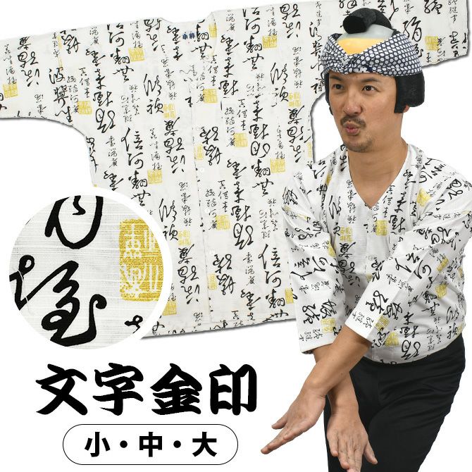 東京小粋 鯉口シャツ 文字金印 白 小・中・大
