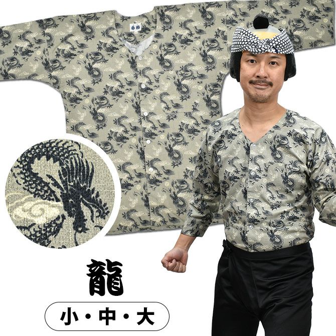 東京小粋 鯉口シャツ 龍(グレー) 小・中・大