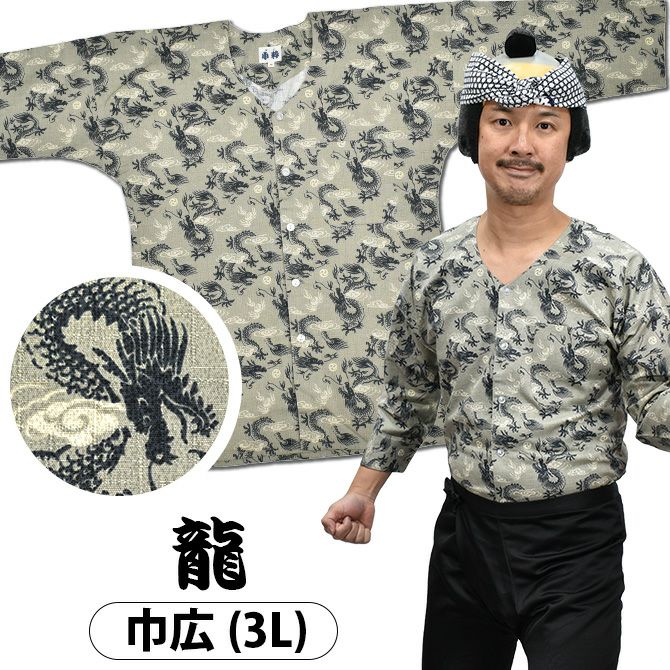 東京小粋 鯉口シャツ 龍(グレー) 3L
