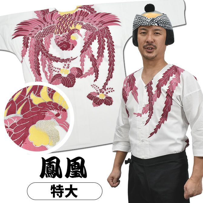 荒武者 鯉口シャツ ピンク鳳凰 綿麻 特大