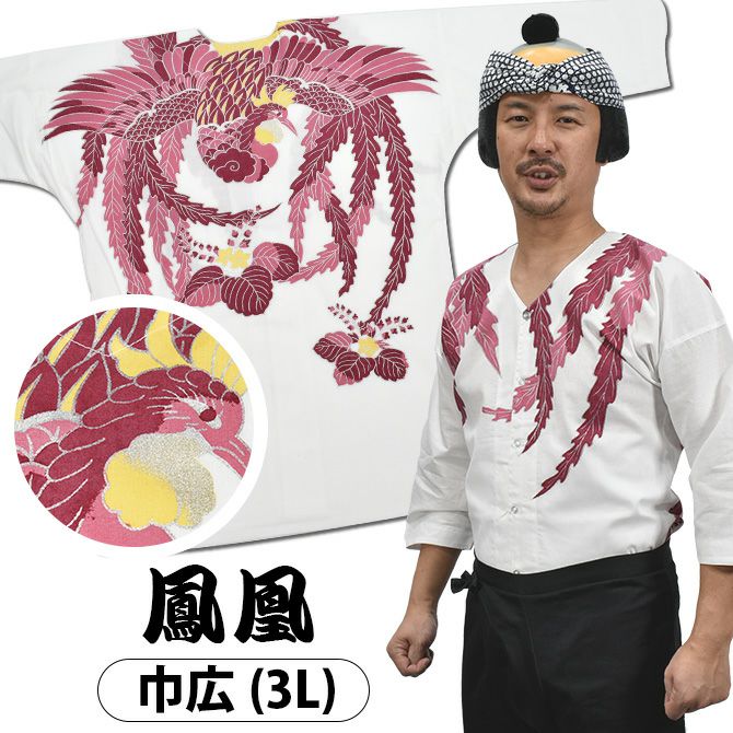 荒武者 鯉口シャツ ピンク鳳凰 綿麻 3L