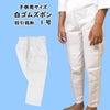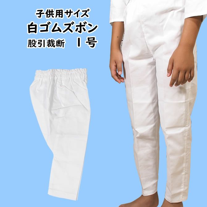 綿100%のお祭り専用の白ゴムズボンです。1号~3号は、ふくらはぎ部分が絞ってある「股引裁断タイプ」です。4号~7号は「ストレートズボンタイプ」です。