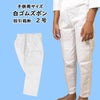 綿100%のお祭り専用の白ゴムズボンです。1号~3号は、ふくらはぎ部分が絞ってある「股引裁断タイプ」です。4号~7号は「ストレートズボンタイプ」です。