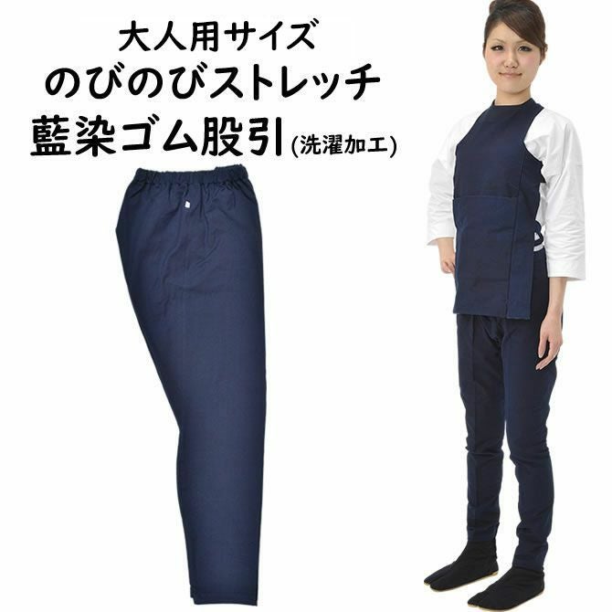 のびのびストレッチ 藍染 ゴム股引 ゴムズボン 大人用サイズ