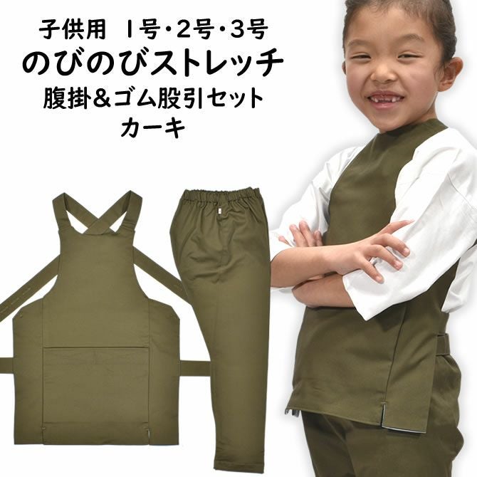 子供用 のびのびストレッチ 腹掛・ゴム股引セット カーキ 1号・2号・3号