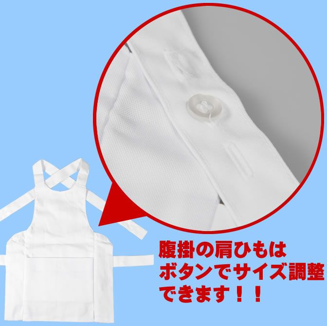 お祭り衣装の定番「腹掛(はらがけ)」です。地域によっては「どんぶり」や「寸胴(ずんどう)」、「前掛け」と呼ばれています。昔の大工さんが道具をポケットに入れていたエプロンになります。赤ちゃん用のサイズから大人用のサイズまで、豊富なサイズを取り揃えました。生地も様々な種類や色の腹掛をご用意しています。