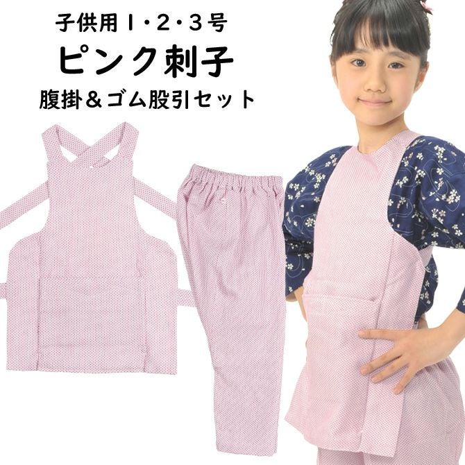 子供用 ピンク刺子 腹掛・ゴム股引セット 7号