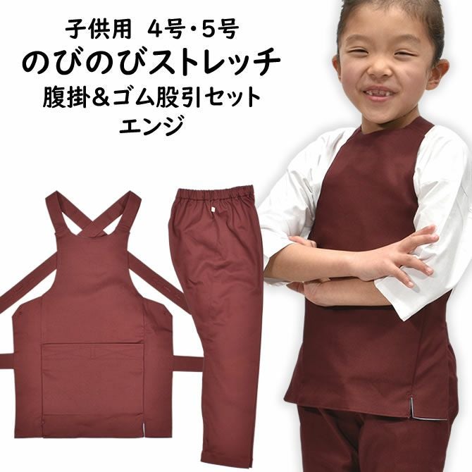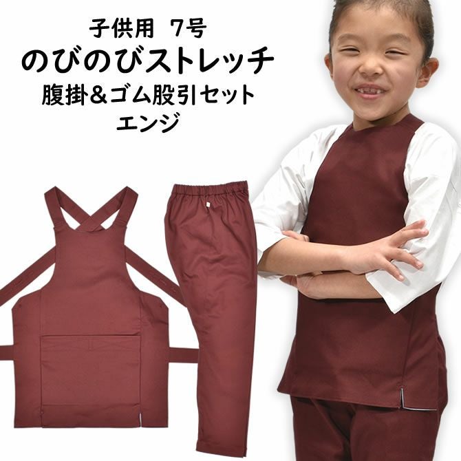 子供用 のびのびストレッチ 腹掛・ゴム股引セット エンジ 1号・2号・3号