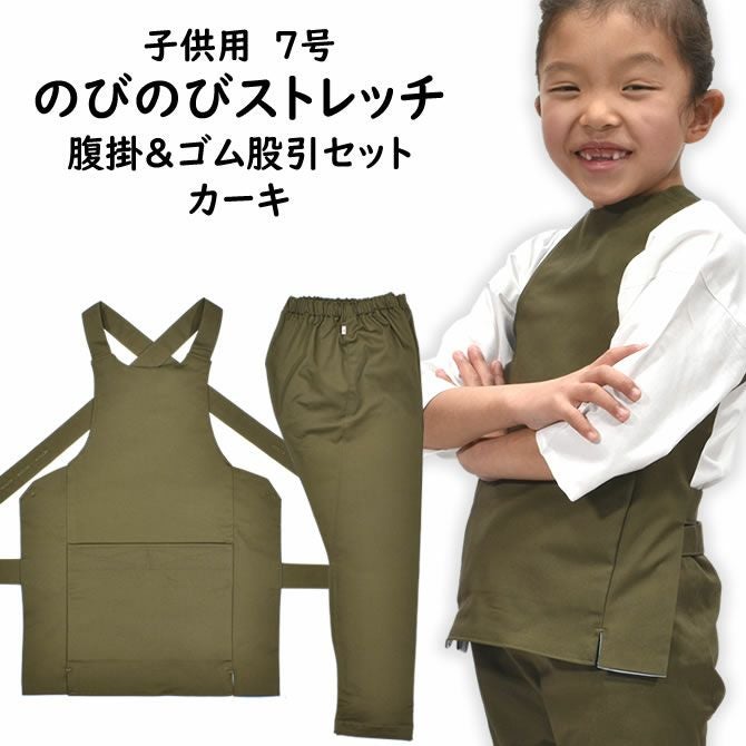 子供用 のびのびストレッチ 腹掛・ゴム股引セット カーキ 4号・5号