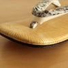 鼻緒部分に本物の錦蛇(にしきへび)の皮を使用したセッタです。本物の皮ですので、商品によって皮の柄に違いがございます。鼻緒の柄が画像と異なる場合がありますのでご了承ください。