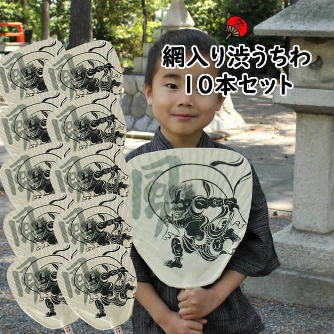 網入 渋うちわ 風神雷神 10枚セット