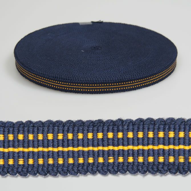 箱紐・平紐 一巻(30m) #15 紺に黄線 幅:12mm