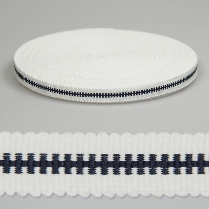 箱紐・平紐 一巻(30m) #22 白に紺線 幅:12mm