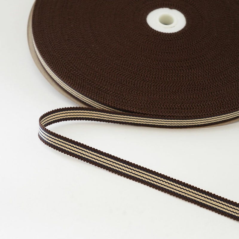 箱紐・平紐 一巻(60m) #214 茶にベージュ3本 幅:12mm