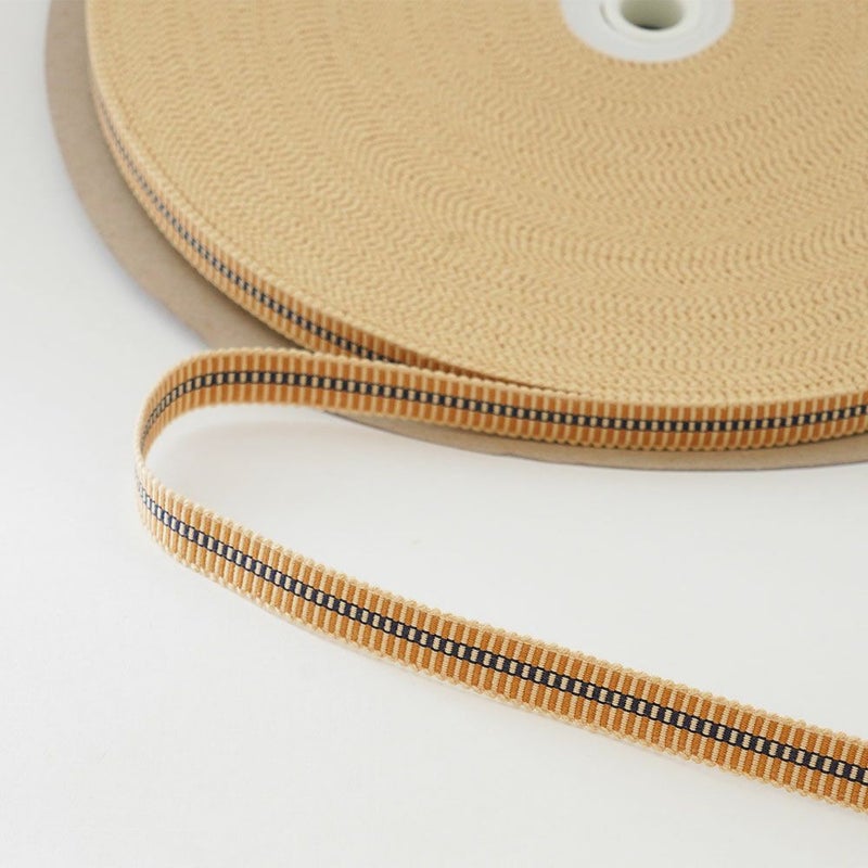 箱紐・平紐 一巻(60m) #218 ベージュに黄2本 幅:12mm