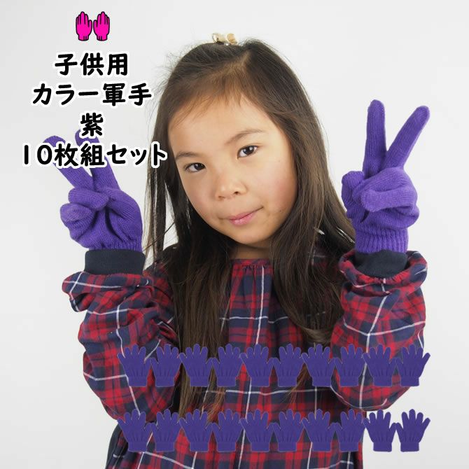 カラー軍手 紫 10組セット カラーのびのび手袋 (子供用・女性用)