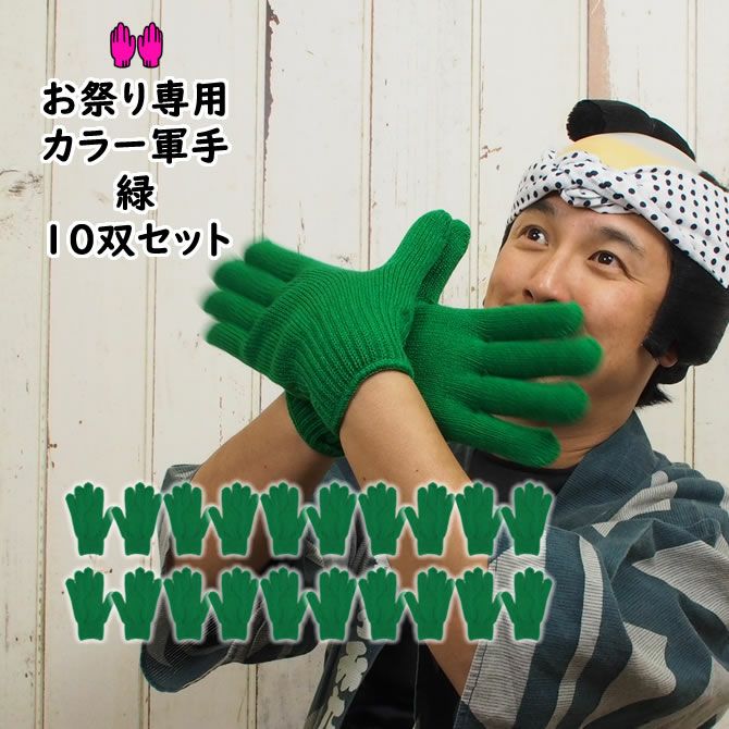 10組セット カラー軍手 緑(NO.7) 大人用フリーサイズ アクリル製