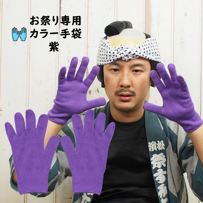 お祭り専用カラー手袋 紫(NO.58) 大人用フリーサイズ コットン製