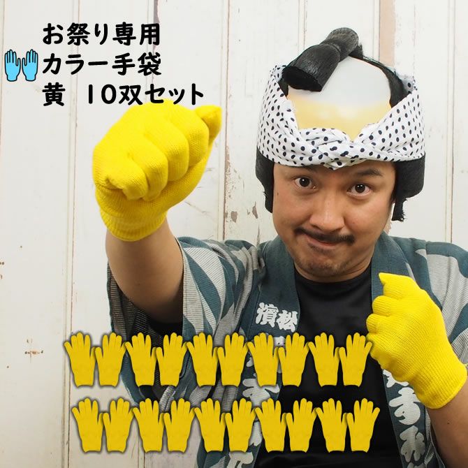 10組セット お祭り専用カラー手袋 黄(NO.54) 大人用フリーサイズ コットン製