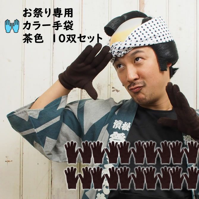 10組セット お祭り専用カラー手袋 茶色(NO.61) 大人用フリーサイズ コットン製