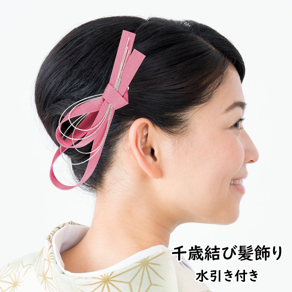 千歳結び髪飾り 水引き付き ピンク