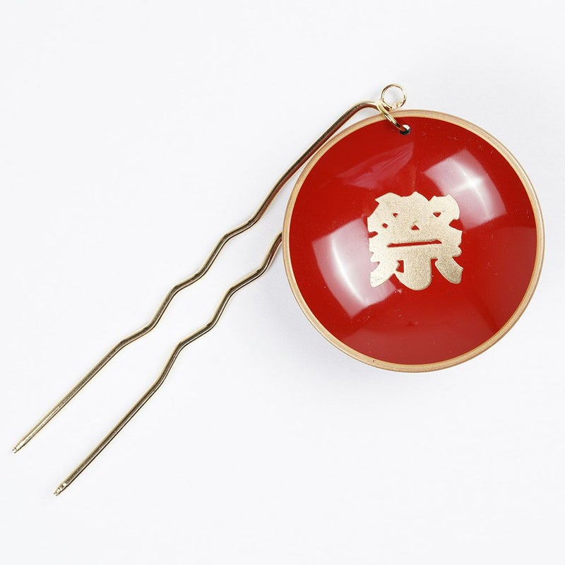 祭り髪飾り ミニ朱盃かんざし 祭 金文字