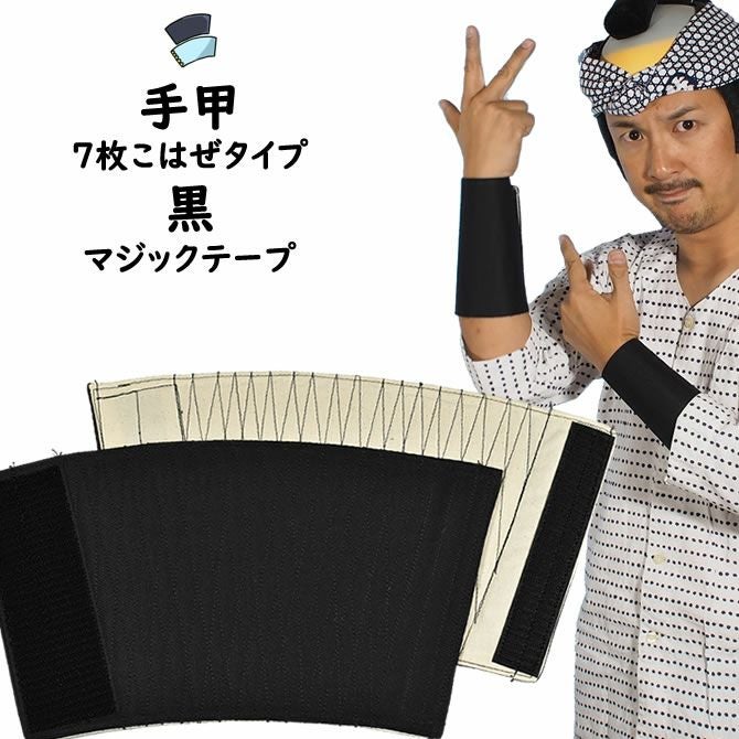 黒色のマジックテープ式の手甲(てこう)です。7枚こはぜの手甲の幅に相当する、幅が長いタイプの手甲です。
